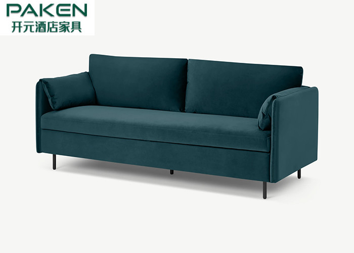 Platforma rozkładana sofa, stalowo-niebieski aksamit, tapicerka z pianki o wysokiej gęstości Hotelowa sofa rozkładana rozszerza przestrzeń