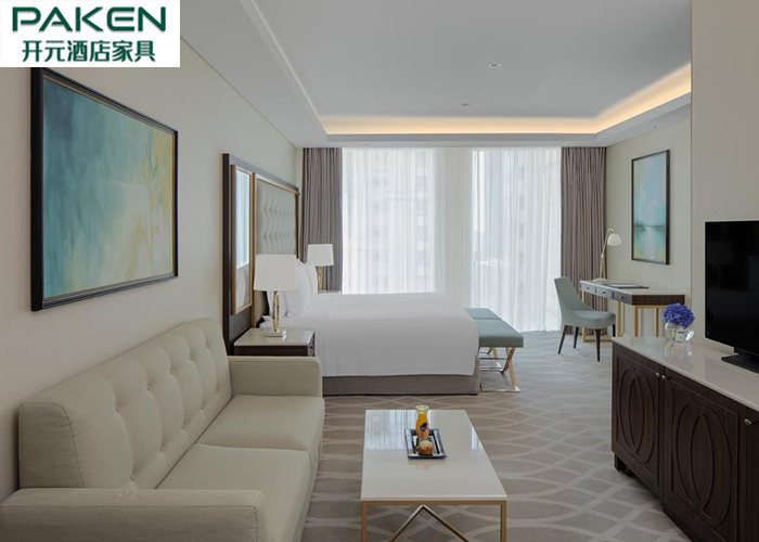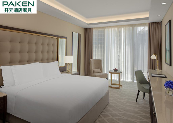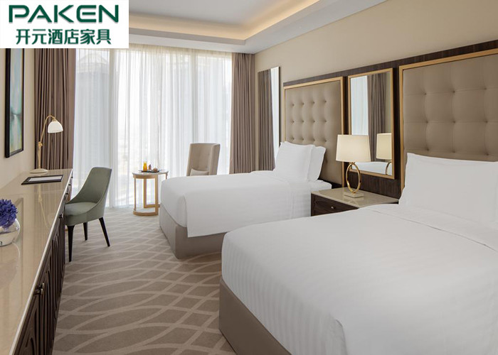 Ekonomiczne Standardowe Meble Hotelowe Zestawy Sypialni Katar / Arabski Lekkie Luksusowe Meble Orzech + Złoty SS