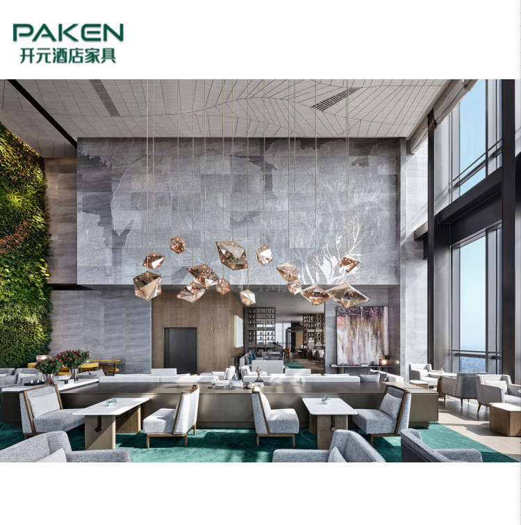 Wykonujemy na zamówienie meble do holu dla projektów 4- i 5-gwiazdkowych hoteli, takich jak krzesło wypoczynkowe, stół środkowy, sofa, stół recepcyjny, szafka boczna, szafka ścienna, gablota, drewniane panele ścienne i ect.